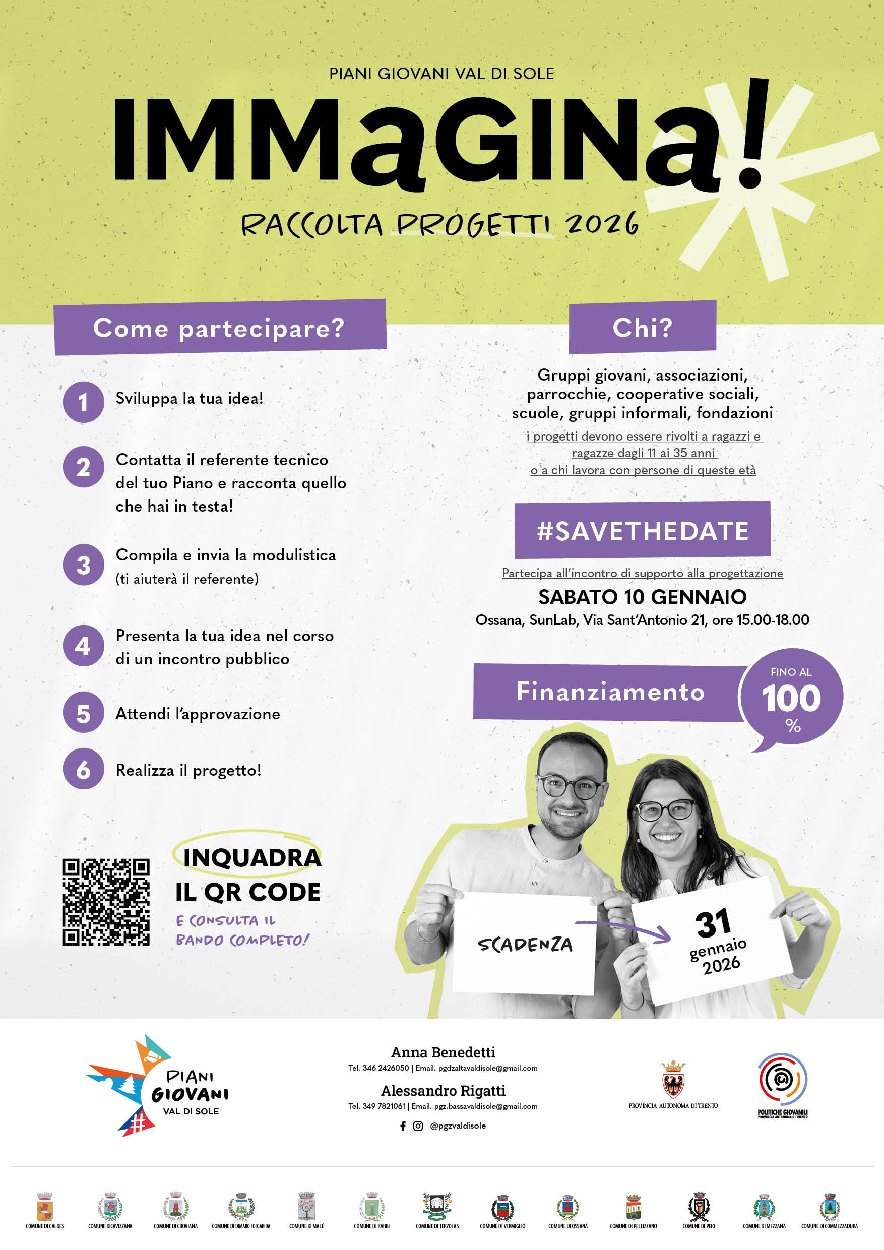 Aperta fino al 31 gennaio 2026 la raccolta progetti "Immagina" dei Piani Giovani Val di Sole